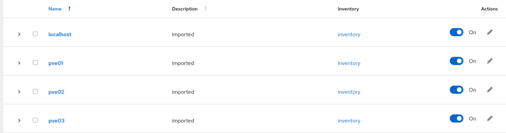 Wenn anschließend eine erste Synchronisierung erfolgreich gelaufen ist, tauchen automatisch die Systeme aus dem Inventory unter „Hosts“ auf.